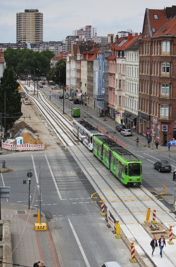 Die Sanierung der Bahntrasse zwischen Hohem Ufer und Goetheplatz war über die Jahre der Benutzung notwendig geworden und daran schloss sich der Bau des Hochbahnsteiges „Goetheplatz“ an. Das Gleisbett im Kreisel  wurde ebenfalls erneuert. Bauarbeiten in der Braunstraße und in der Humboldtstraße folgen.